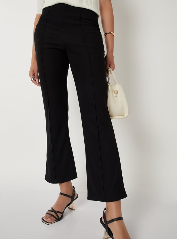 Women Ribbed Kick Flare Trousers
